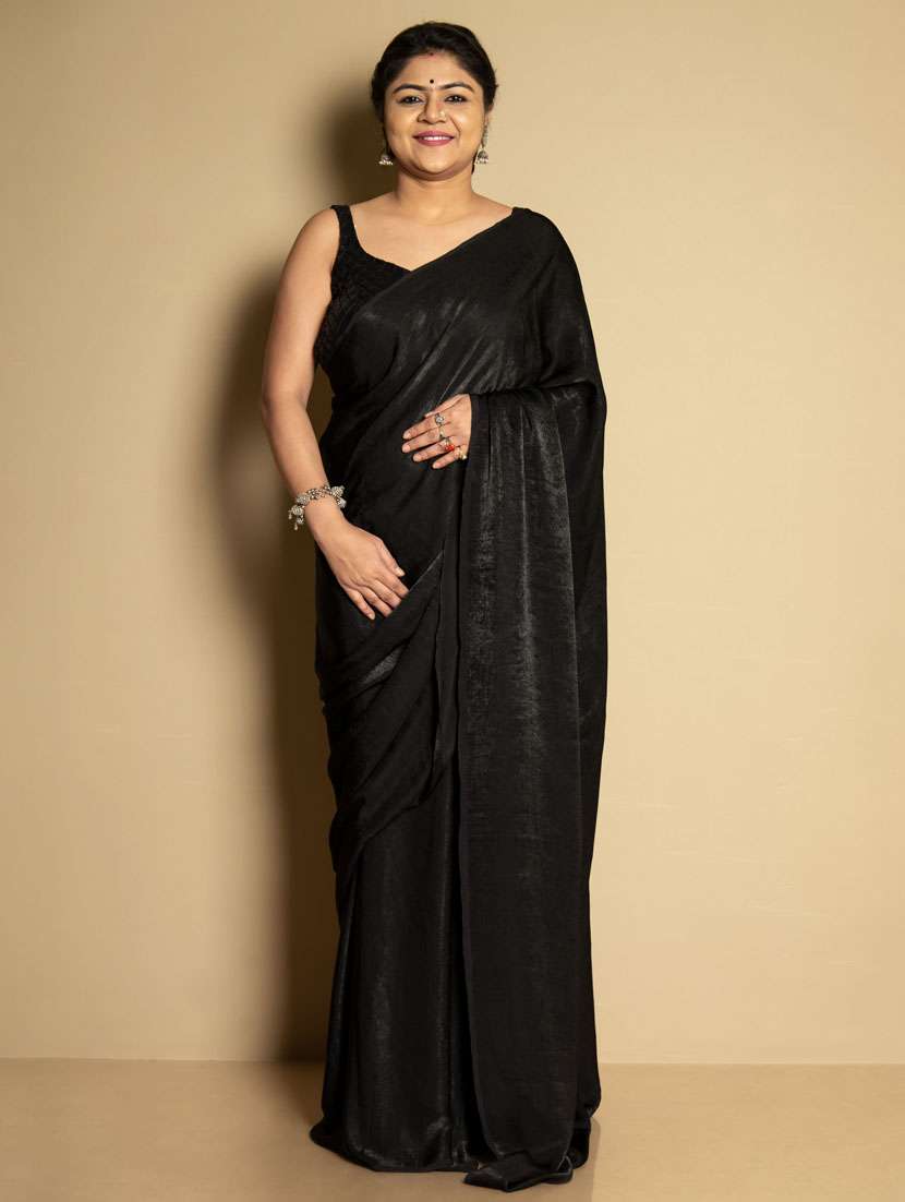 women black solid saree