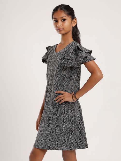 Let your little star shine bright in the Chilins Sparkle Ruffle Sleeve Dress. Designed for girls, this slim-fit silhouette features a high neckline and playful ruffled sleeves that add a touch of elegance and charm. The shimmering silver fabric, crafted from a soft polyester blend, catches the light beautifully—perfect for celebrations and camera moments.