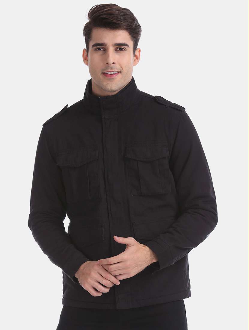 black solid casual jacket