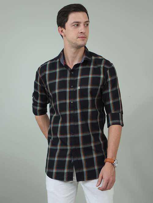 men long sleeves checkered casual shirt