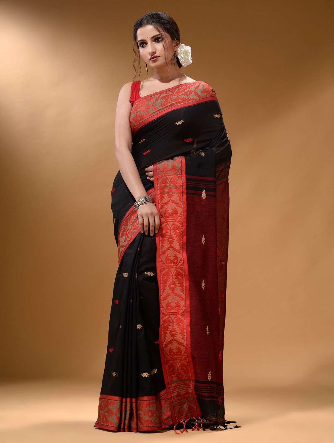 - » women's self design black colored saree with blouse