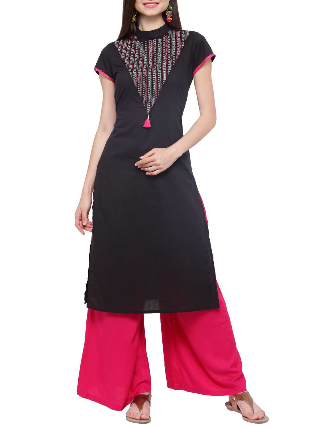 - » black cotton embroidered straight kurta