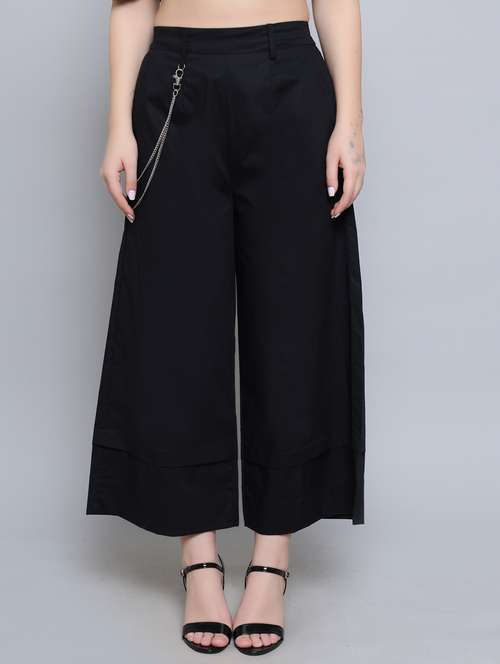 - » women black solids wide leg trousers