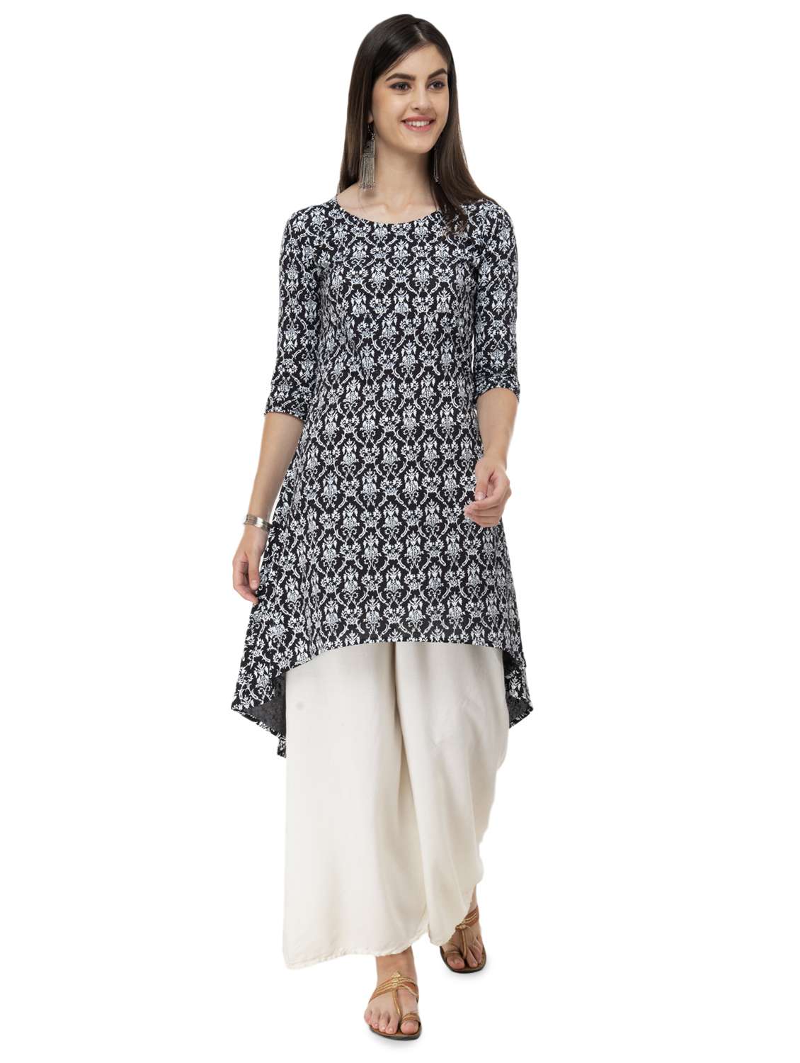 block print asymmetric kurta