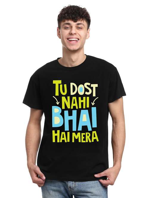 - » men black cotton front print t-shirt