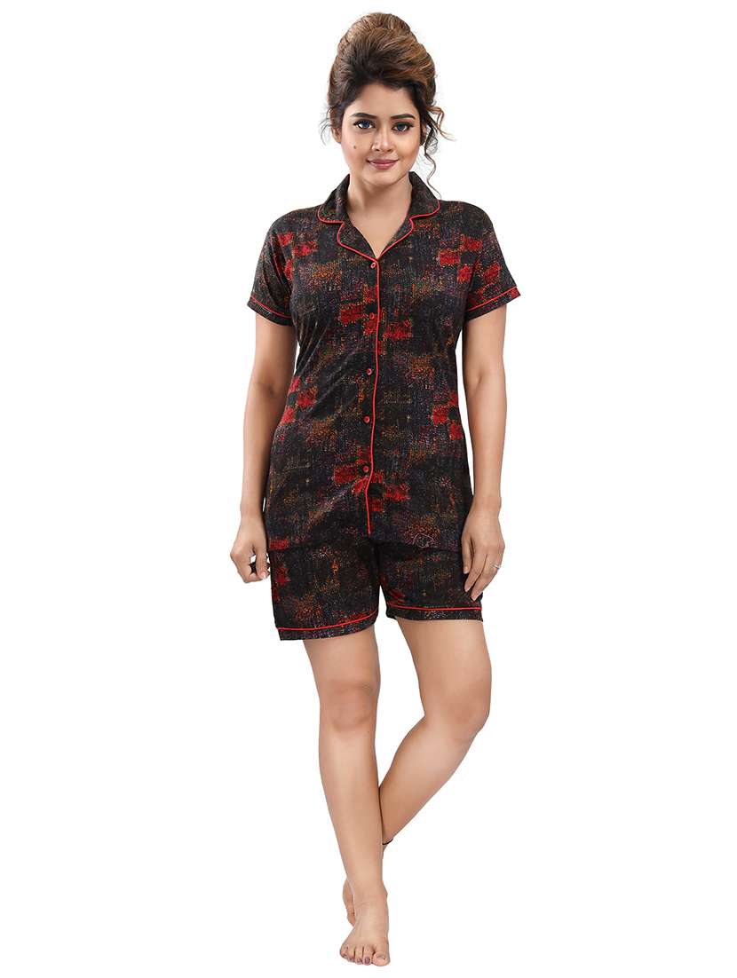 - » shirt collar printed nightwear shorts set