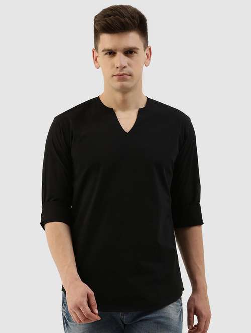 - » notched neck solid short kurta