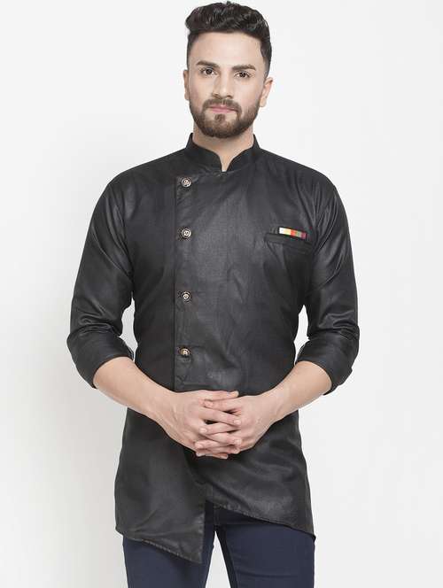- » black solid asymmetric short kurta