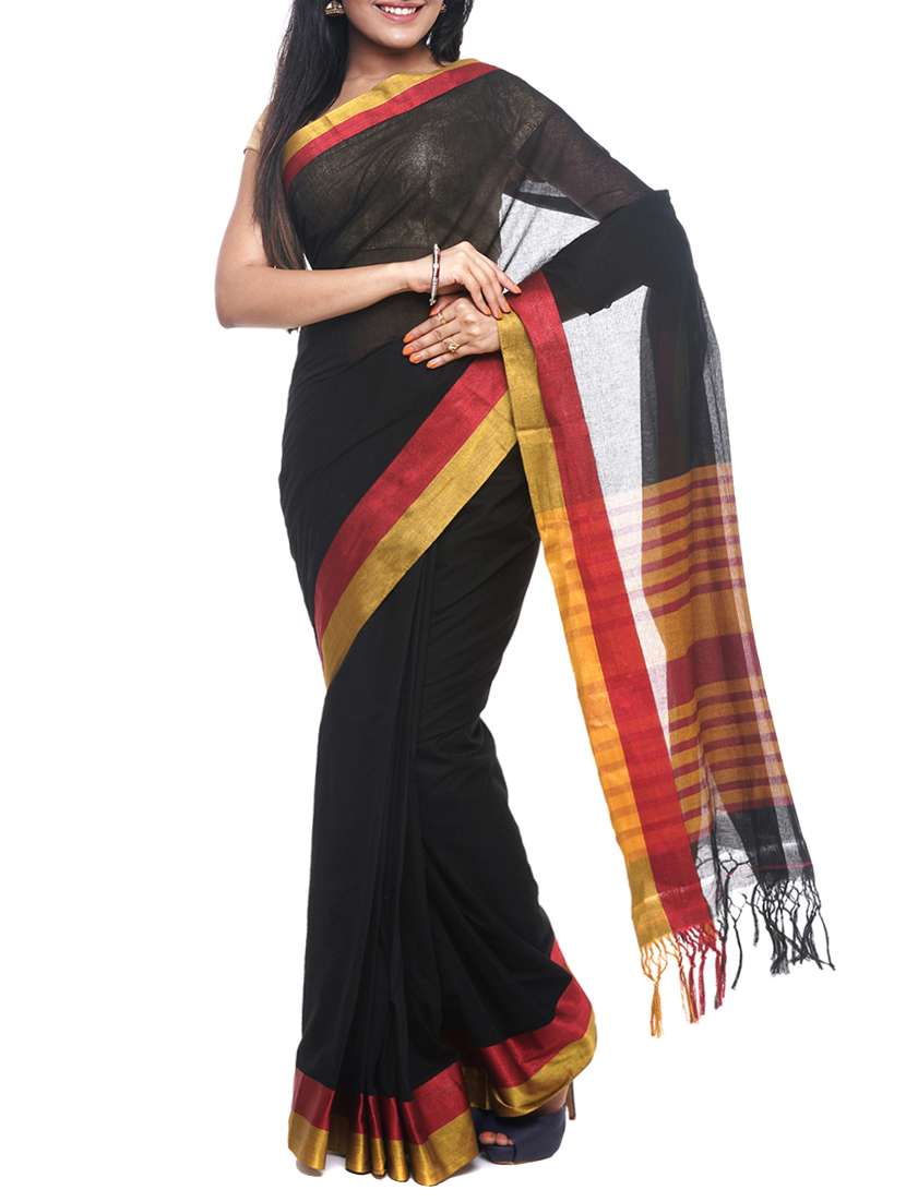 - » black cotton zari work handloom saree