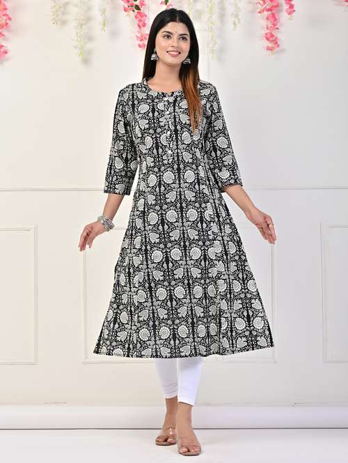 - » women three quarter sleeve floral printed a-line kurta