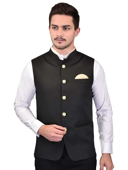 men solid mandarin neck sleeveless nehru jacket - 21785263 - Very Small Image - 1