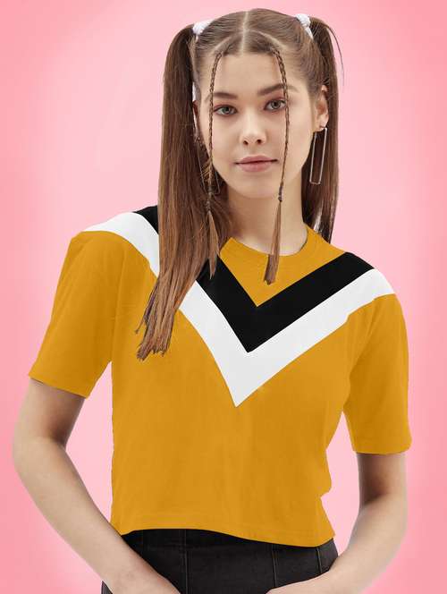 - Opt for this top made up of cotton blend material and get it in a varied neck design.