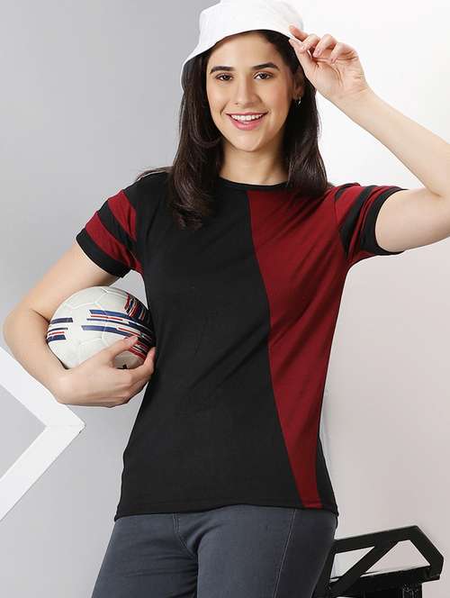 - » women's color block round neck t-shirt