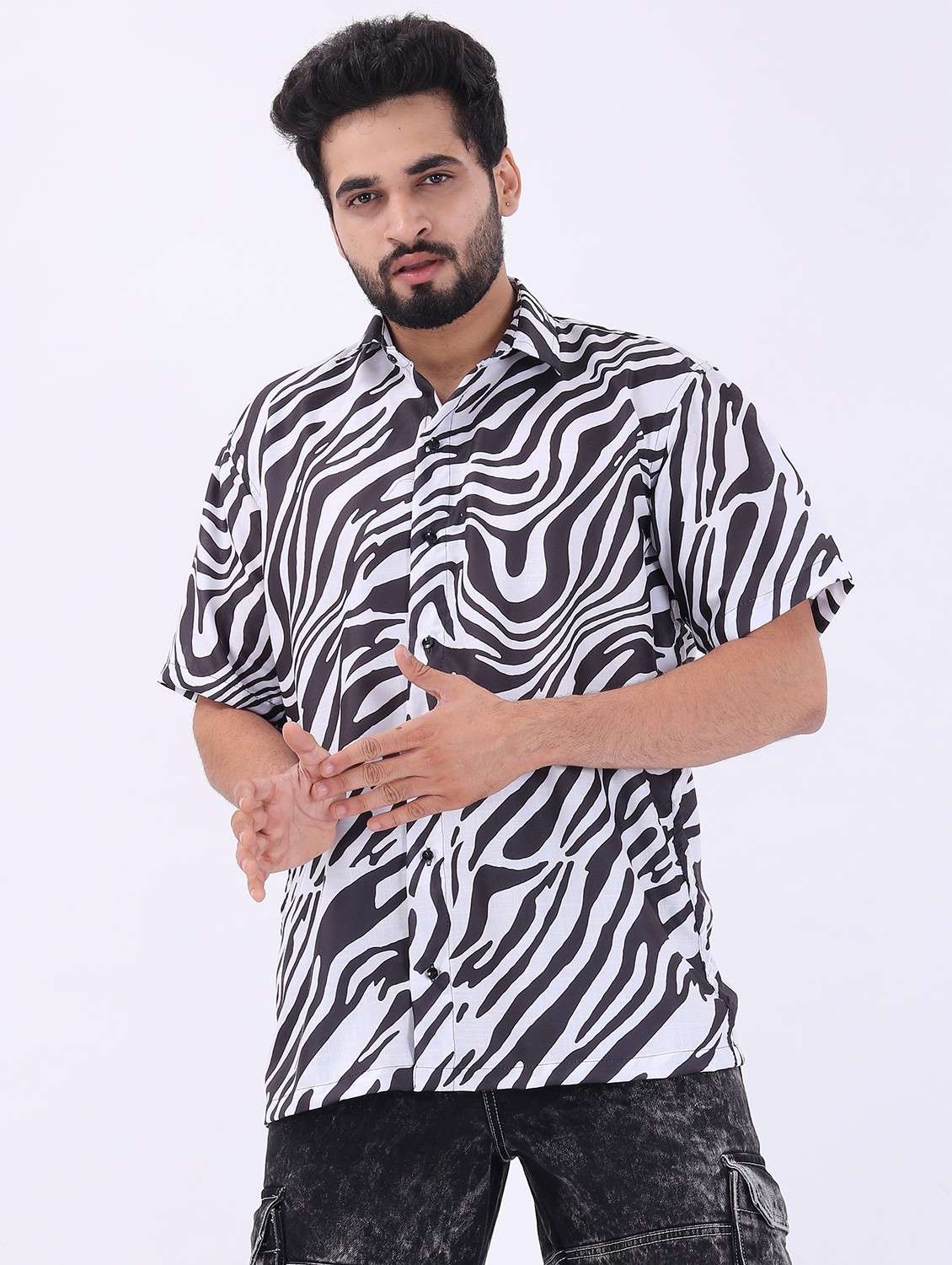 - » men printed short sleeve oversized casual shirt