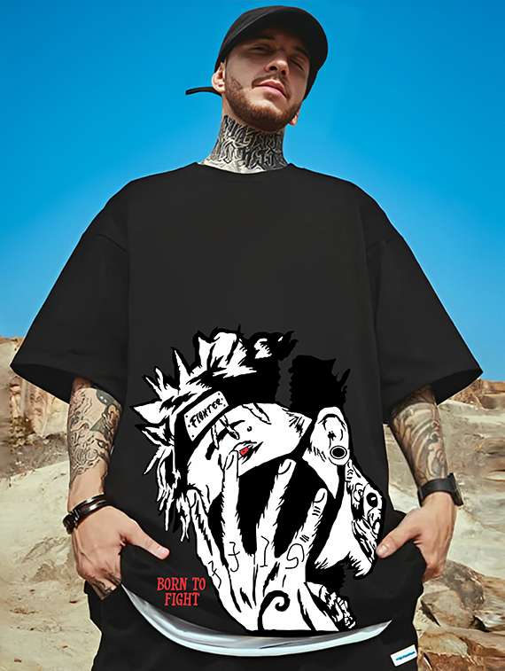 men black oversized front & back printed t-shirt