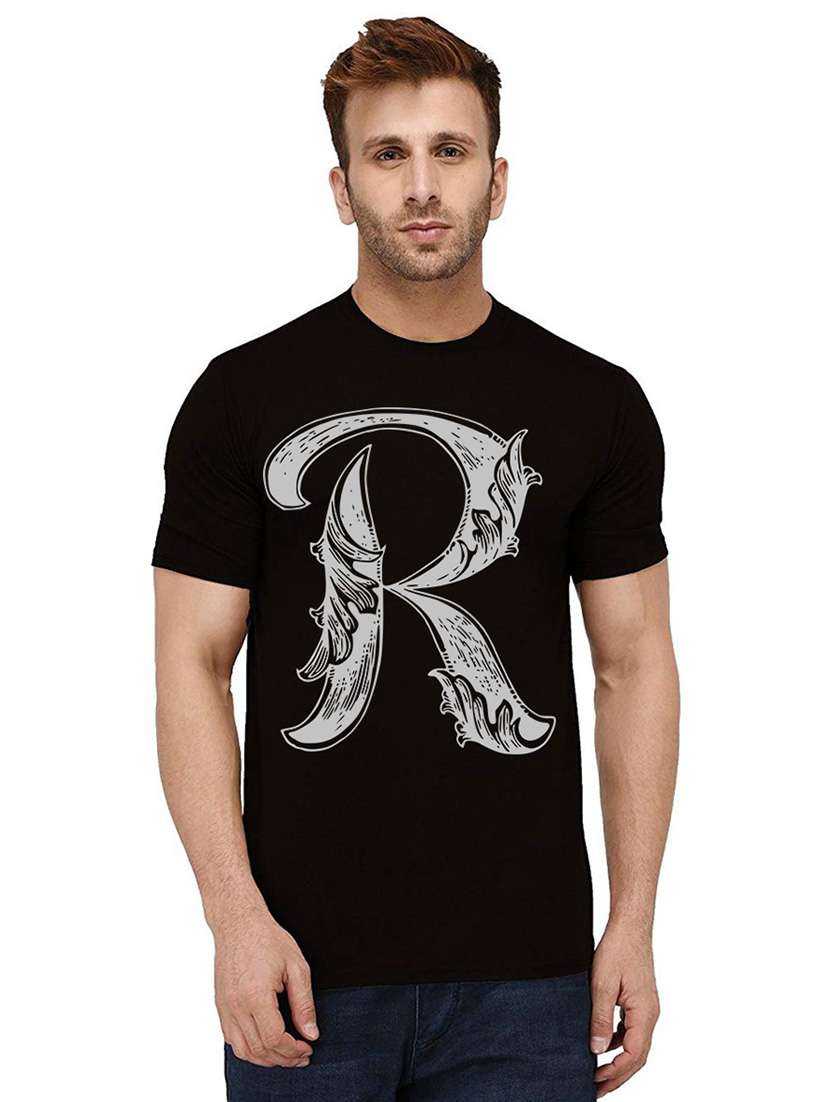 - » black cotton blend front print tshirt