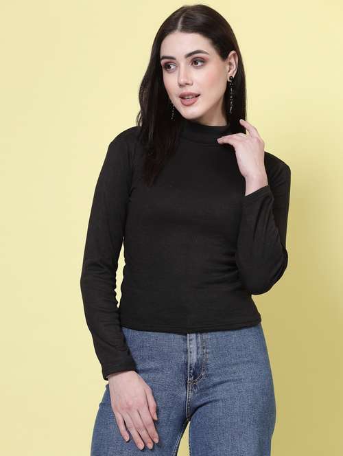 - » women solid black high neck top