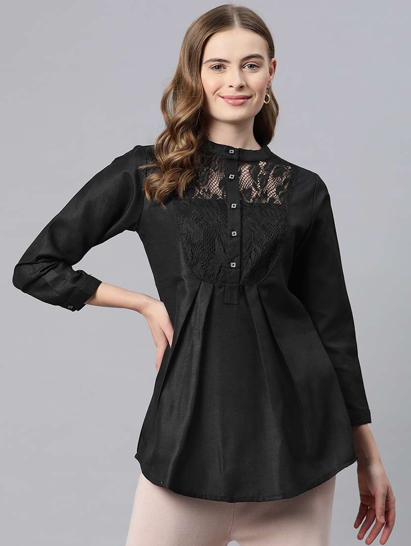 women black lace detailed tunic