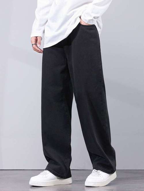 men plain high rise full length baggy jeans