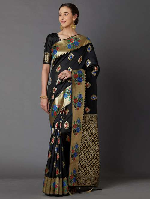 - » black cotton blend banarasi saree