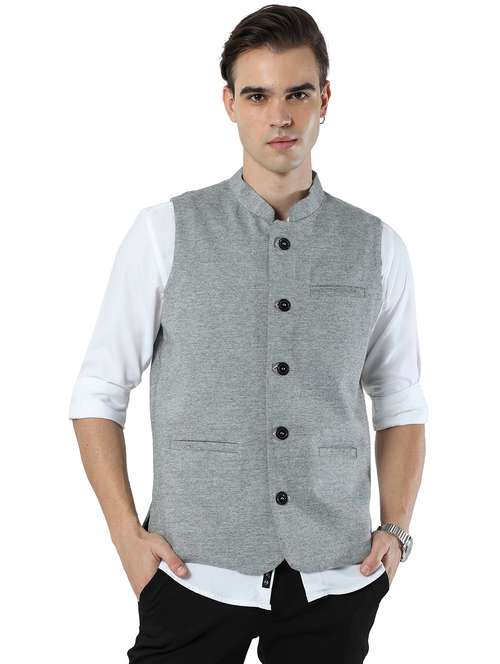 - » men solid mandarin neck nehru jacket