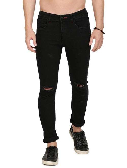 - » men solid slash knee mid rise slim fit jean
