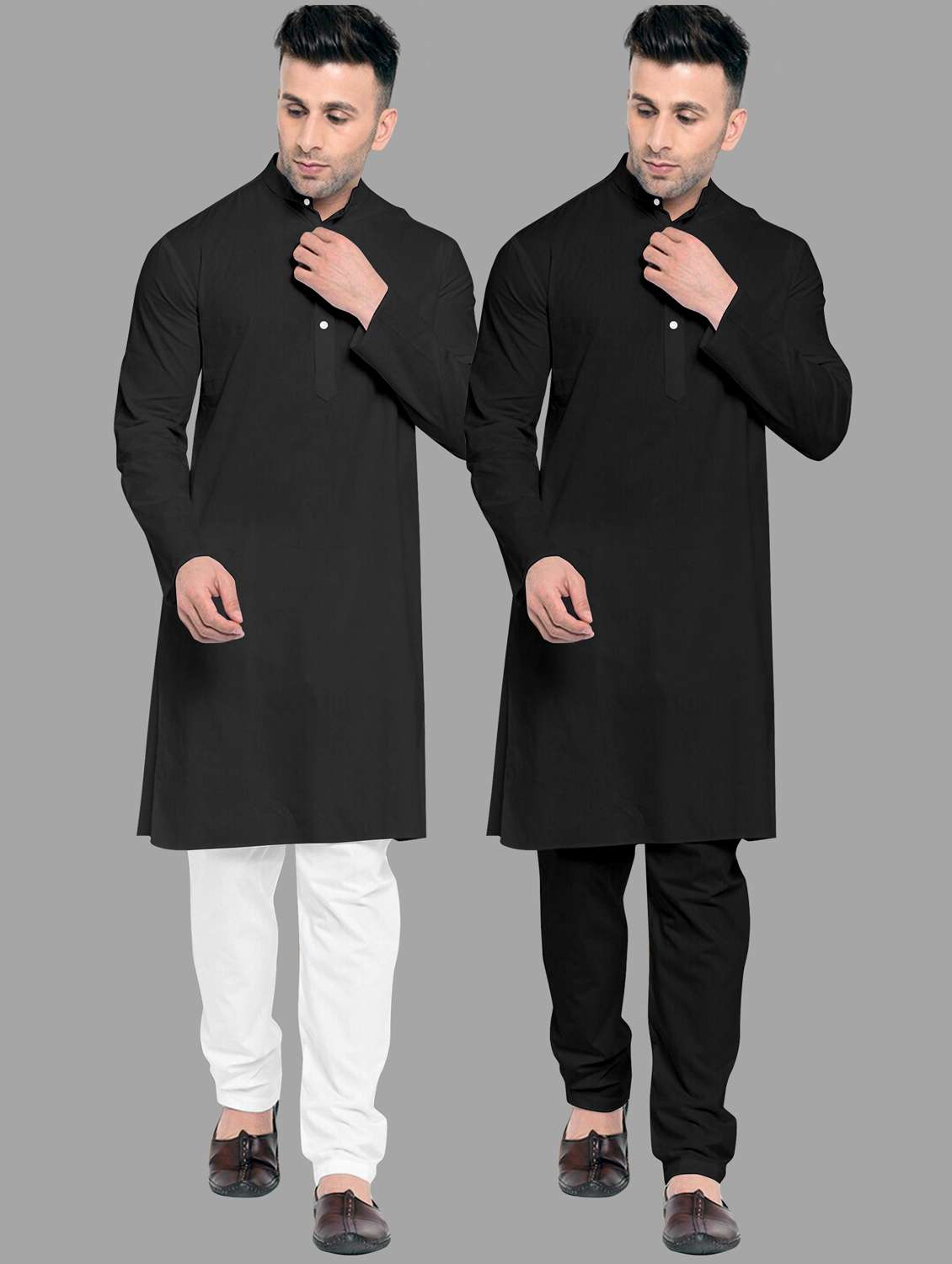 Pack Of 2 Mens Simple Stright Kurta With One Black Pyjama And One White Pyjama Only