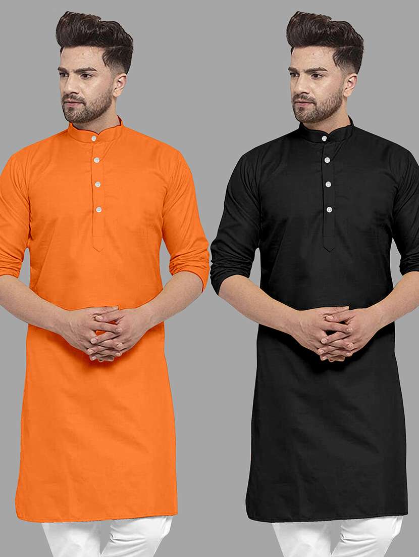 - » men pack of 2 solid mandarin neck long kurta
