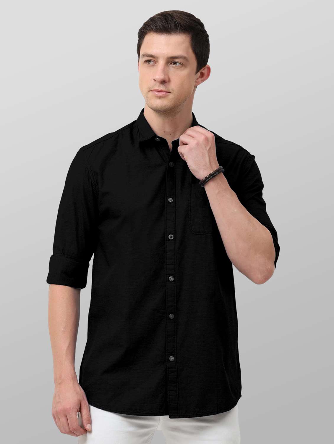 men solid black cotton blend slim fit formal shirt - 20365287 - Very Small Image - 1