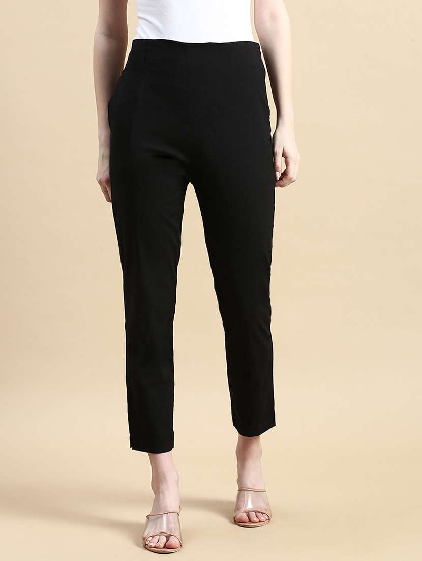 - » women black cotton blend cigarette pants