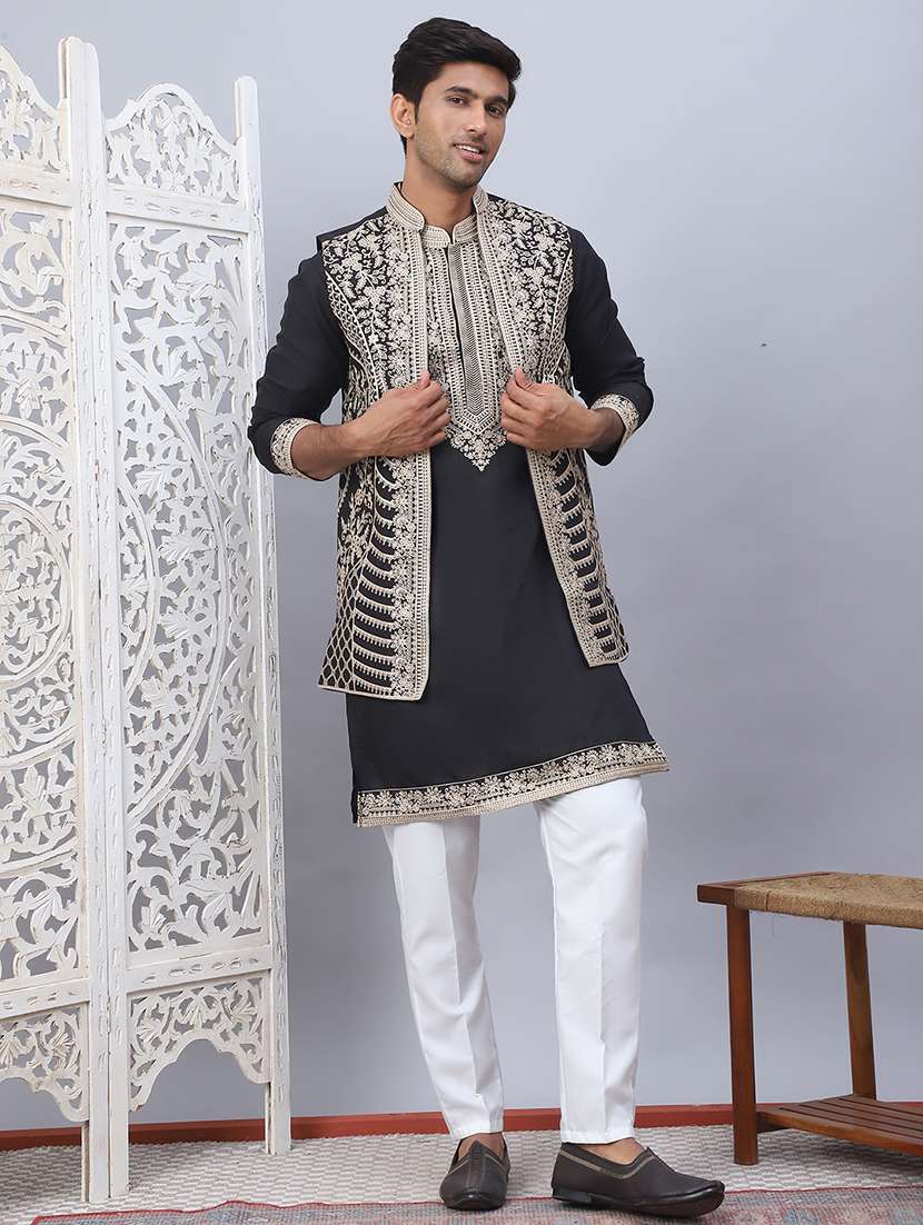 - » men embroidered mandarin neck kurta pyjama with jacket ethnic wear set