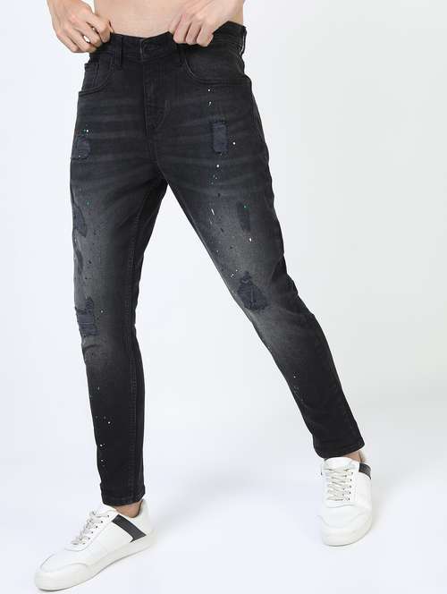 men distressed mid rise slim fit jean