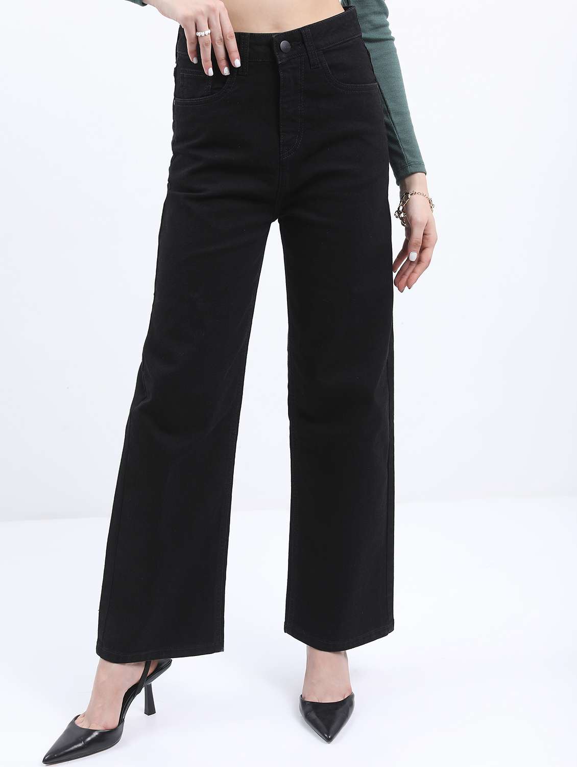 - » women solid high rise wide leg jean