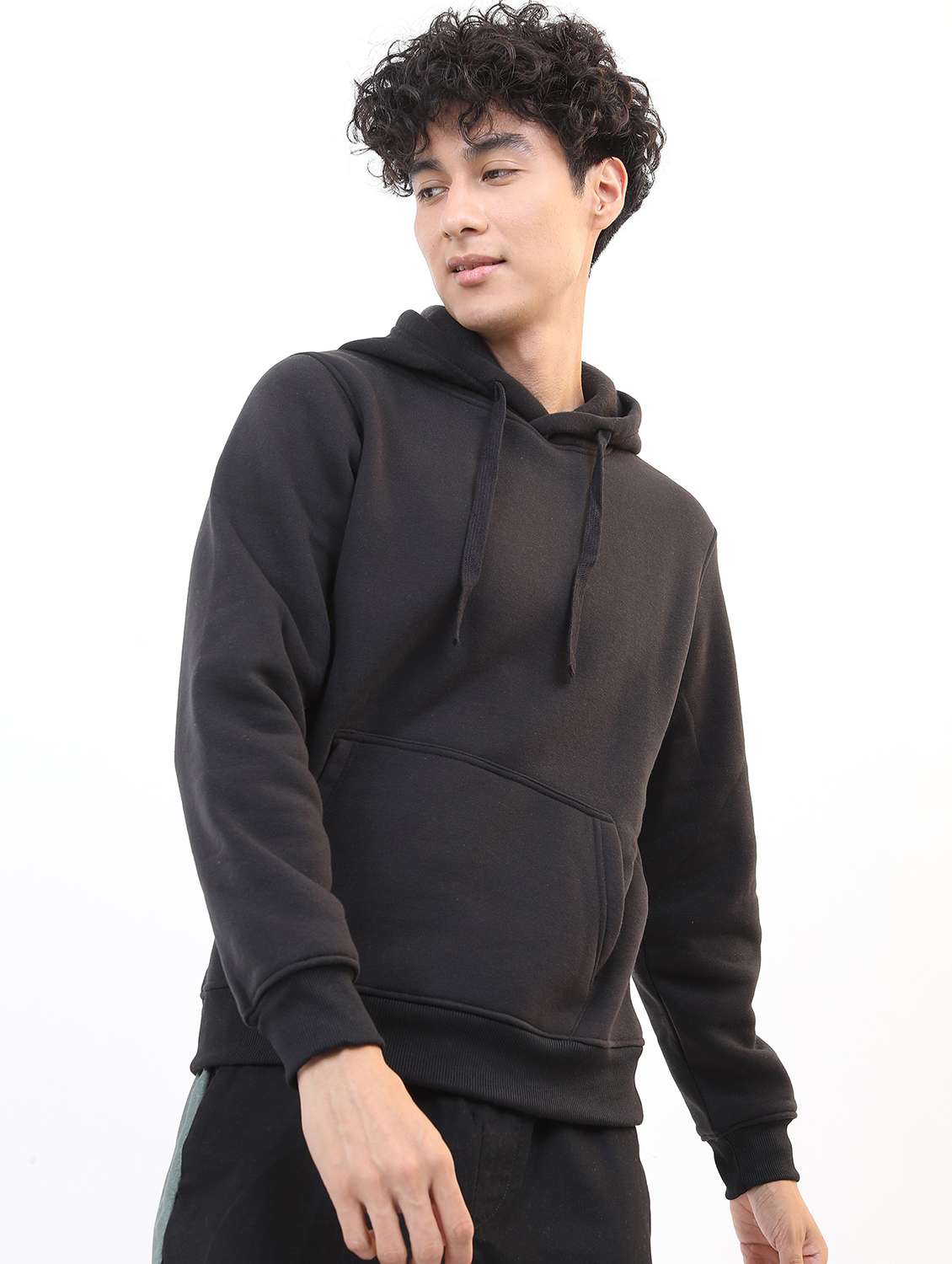 men plain hooded long sleeve sweatshirt