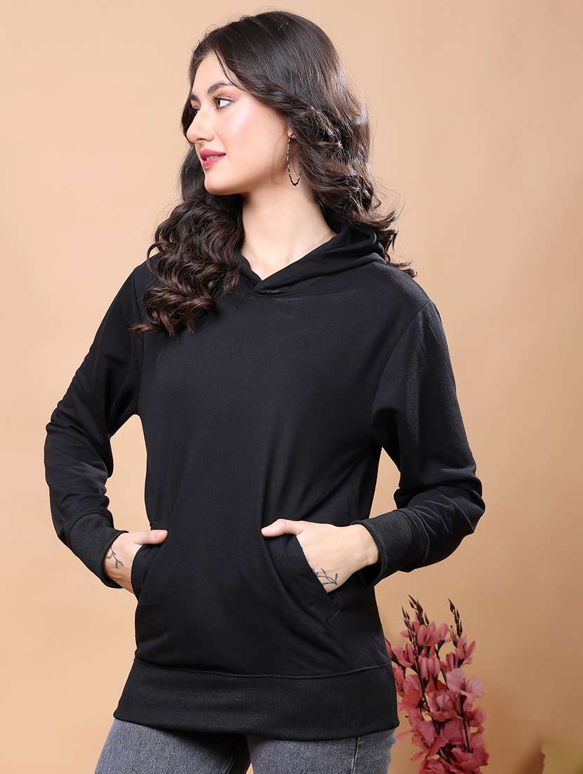 - » women solid long sleeves hooded sweatshirt
