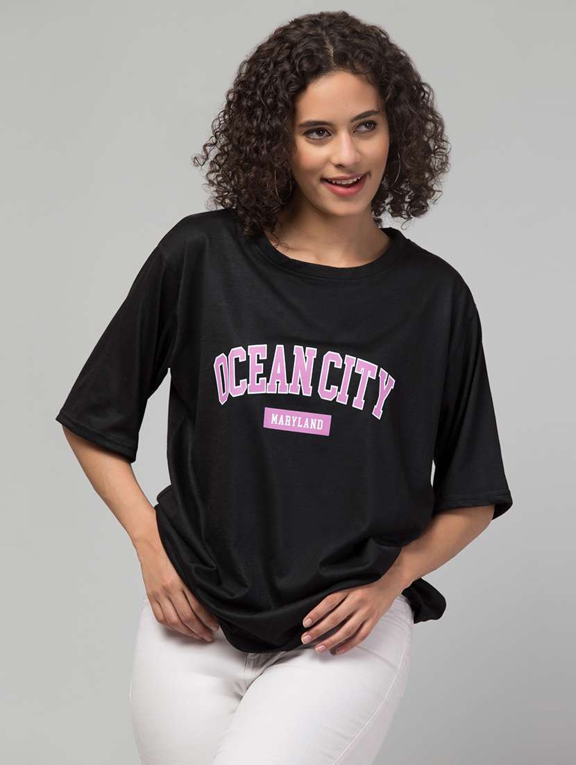 - » women's chest print round neck t-shirt