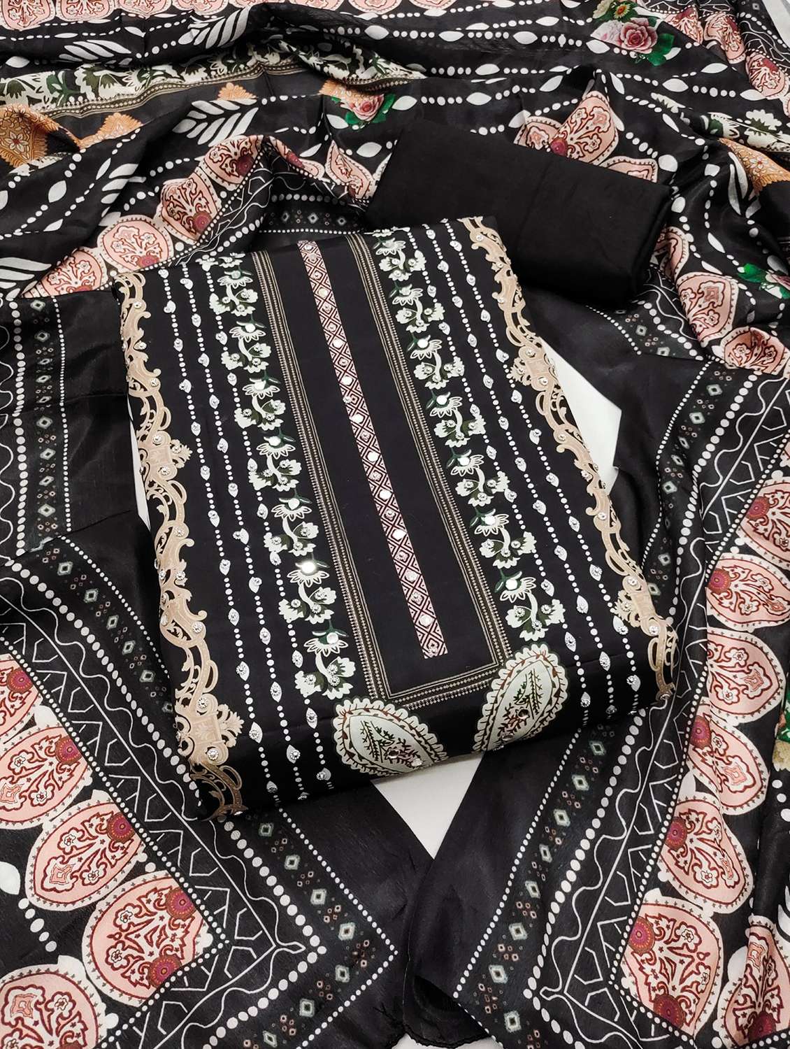 - Look ultra gorgeous in unstitched suits from Leeli Peeri Designer and grab these beautiful suits in black colour.