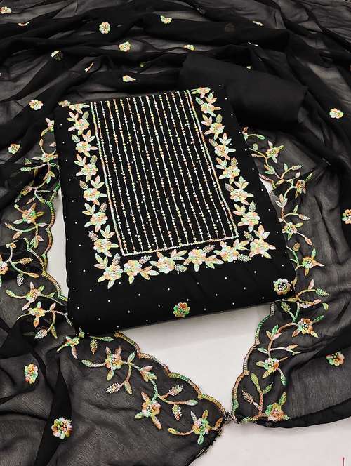 - Look ultra gorgeous in unstitched suits from Leeli Peeri Designer and grab these beautiful suits in black colour.