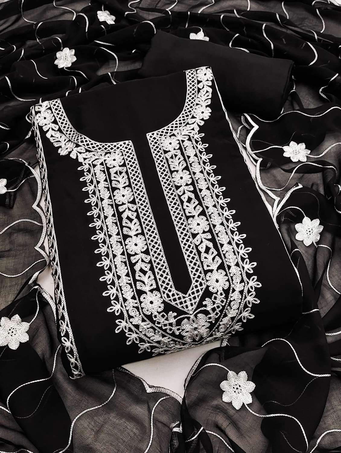 women solid with work embroidered unstitched suit set
