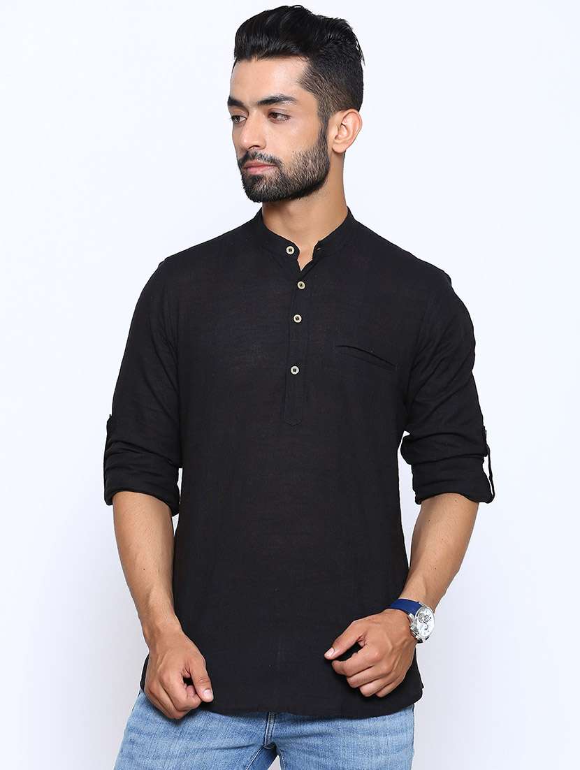 - » black solid short kurta