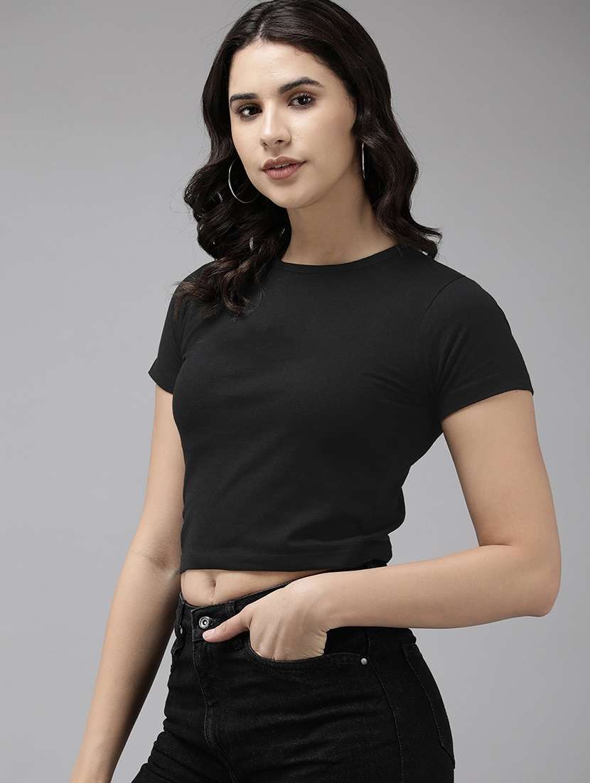 - » women solid round neck crop t-shirt