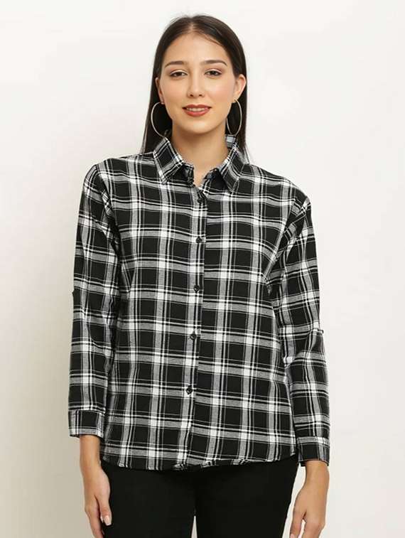 women black checkered collared regular fit shirt