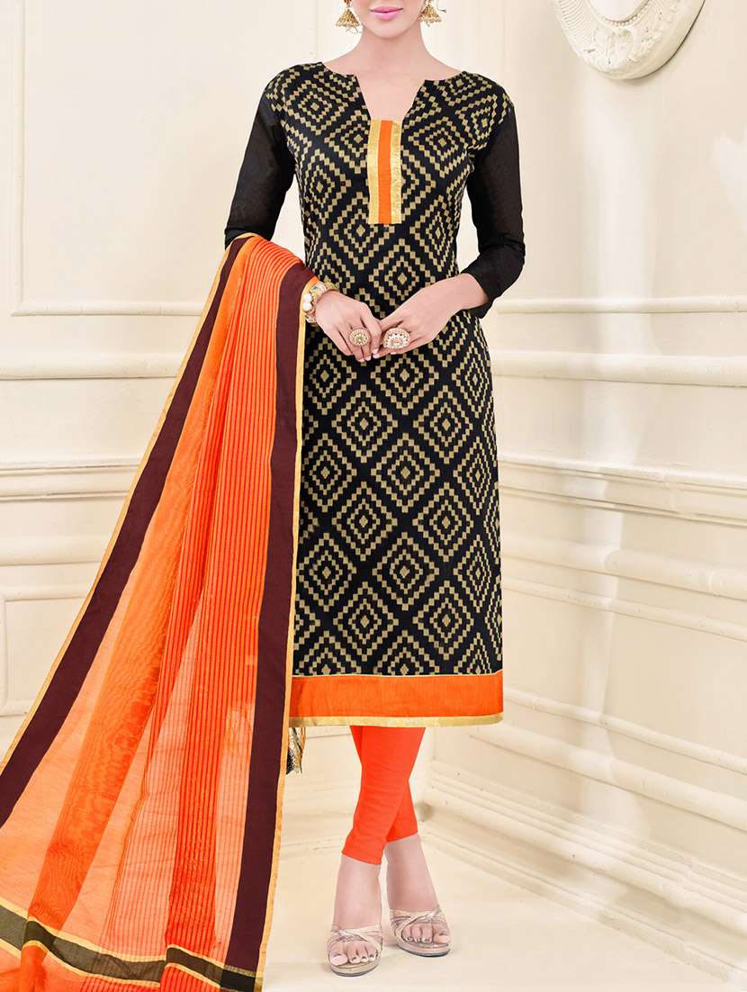 black cotton blend unstitched churidaar suit - 13967910 - Very Small Image - 1