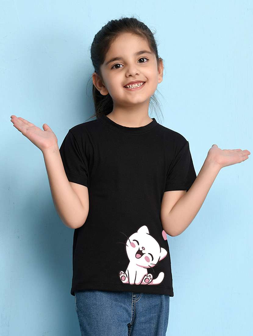 - » girls cute character printed round neck tee