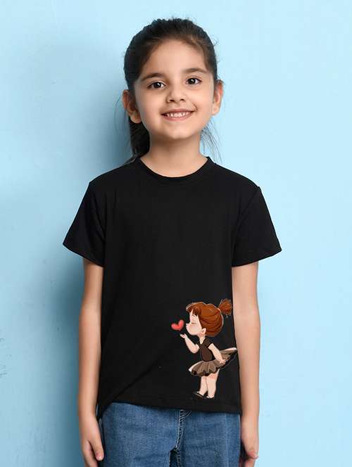 girls cute character printed round neck tee