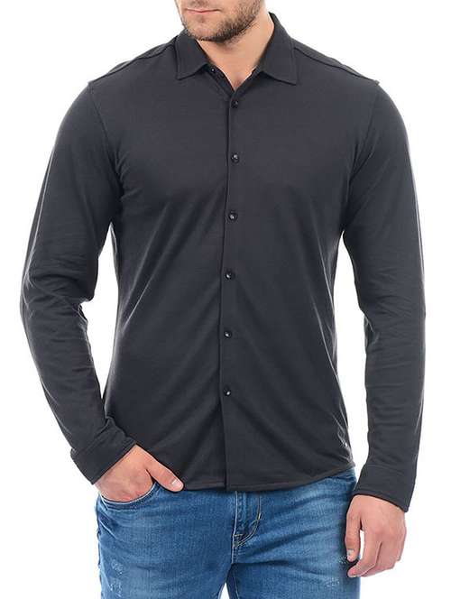 black cotton blend casual shirt