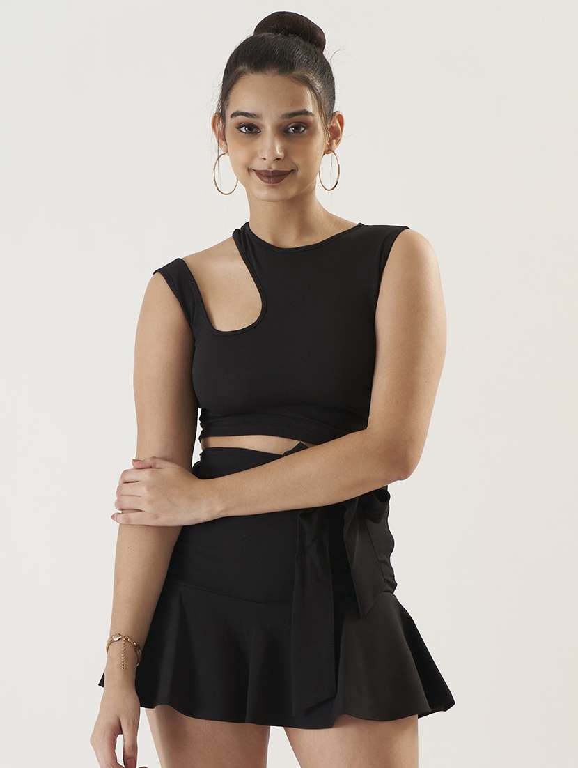 - » women solid asymmetric neck crop top