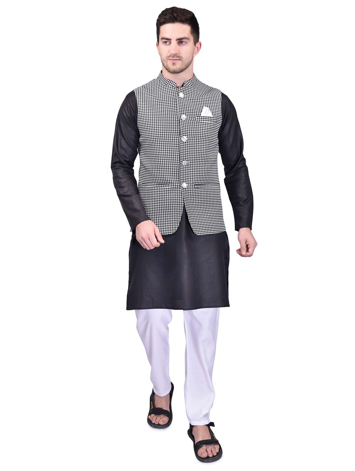 mens kurta pyjama ethnic wear set with nehru jacket