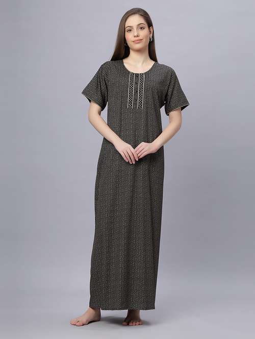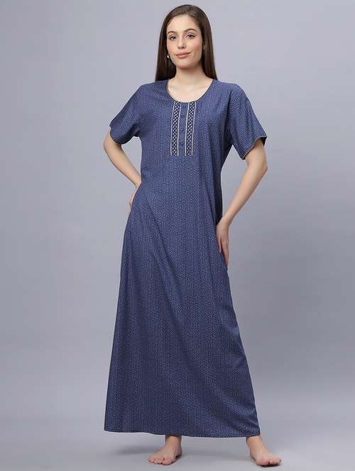 Quira Comfortable Women's Full Length Cotton Blend Half Sleeves Nighty, Soft and Elegant Print