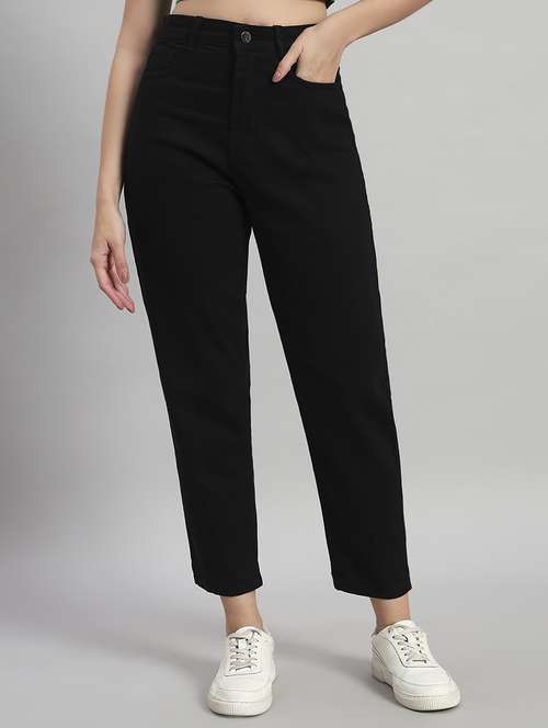 - Choose from the trendy assortment of mom fit jeans in a variety of black colors and timeless designs to complete your clothing essential list.